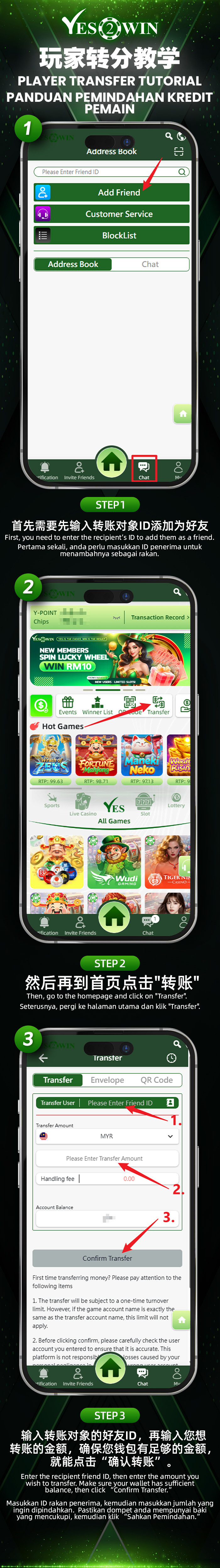 玩家转分给玩家流程教学 - Yes2Win Malaysia